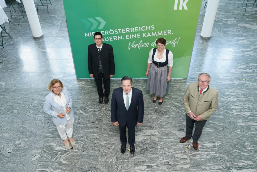 Nach der Landwirtschaftskammerwahl am 1. März fand am 27. April die konstituierende Sitzung der Vollversammlung der NÖ Landes-Landwirtschaftskammer statt. Das neue Führungstrio stellt erneut der NÖ Bauernbund – mit Johannes Schmuckenschlager an der Spitze und den beiden Vizepräsidenten Andrea Wagner und Lorenz Mayr. Landeshauptfrau Johanna Mikl-Leitner und LH-Stv. Stephan Pernkopf betonen die Wichtigkeit einer starken Interessenvertretung, auf die man sich verlassen kann. Ein absolutes Novum in der langjährigen Kammergeschichte: Die Vollversammlung wurde erstmals per Videokonferenz abgehalten, demzufolge wurde auch die Wahl des Präsidiums online durchgeführt.