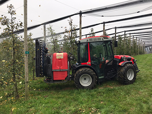 Am Nachmittag werden im Weingarten verschiedene Obst- und Weinbauspritzen ausprobiert und die Applikationsergebnisse verglichen und ausgewertet – auch Überzeilengeräte mit Recyclingsystem werden beim praktischen Einsatz unter die Lupe genommen.