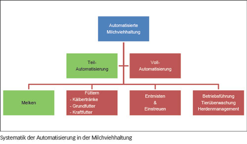 Flexible Vernetzung Auf funktioneller Ebene werden automatische Melk-, Fütterungs- und Entmistungssysteme als „Ausführungshilfen“ bezeichnet. Als sogenannte „Managementhilfen“ gelten Herden- und Managementprogramme, also die Brunsterkennung, die automatische Kontrolle der Futteraufnahme, des Wiederkauens. Zu den Managementhilfen zählen auch Ortungssysteme und anderes mehr. Der unbemannte Stall erfordert hohe Flexibilität und eine lückenlose Vernetzung der einzelnen Systeme. Die Herausforderung für die Zukunft besteht folglich darin, Ausführungshilfen und Managementhilfen sinnvoll miteinander zu verbinden. Moderne Begriffe dafür sind „Smart farming“ oder „Milchproduktion 4.0“.