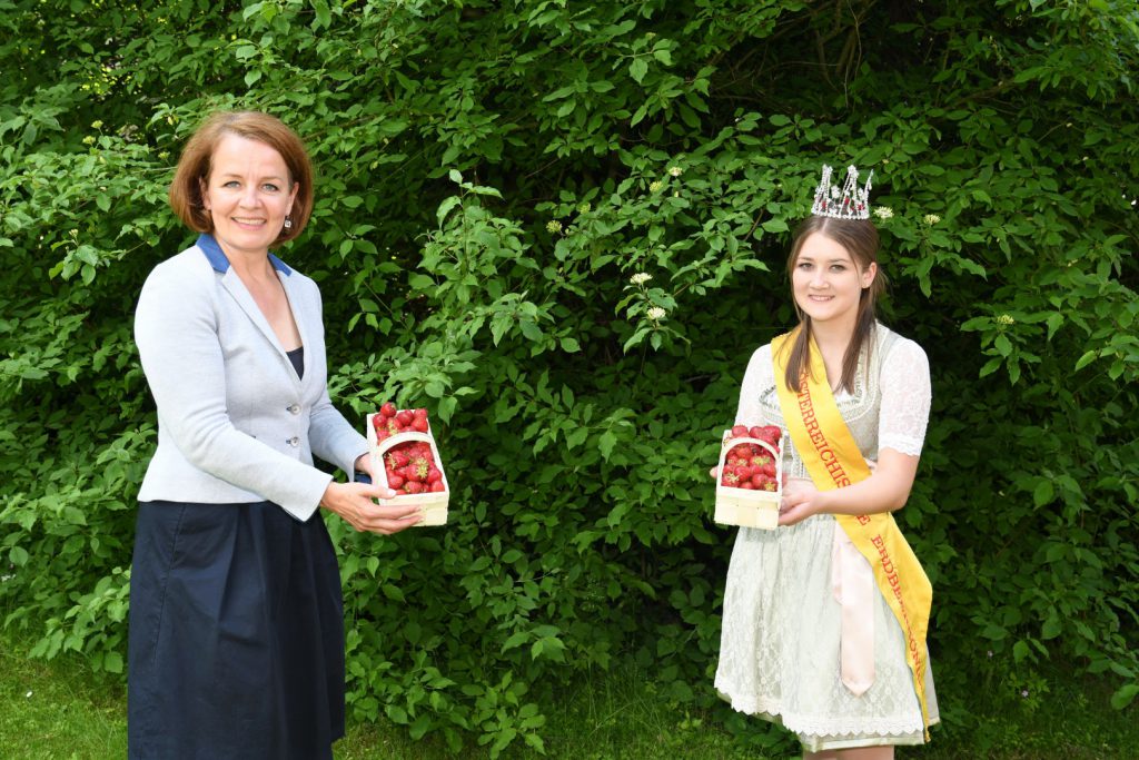 „Die Erdbeerkönigin Nathalie Ramhofer hat eine verantwortungsvolle Aufgabe als Botschafterin für heimische Erdbeeren übernommen. Für dieses Engagement danke ich ihr sehr herzlich, denn schließlich gilt es in der Hochsaison der roten Beeren zahlreiche repräsentative Termine wahrzunehmen, die es mit der Schule zu vereinbaren gilt“, betont Bildungs-Landesrätin Christiane Teschl-Hofmeister. „Pflückfrische heimische Erdbeeren sind bei den Konsumentinnen und Konsumenten besonders beliebt, da sie das erste saisonale und regionale Freilandobst sind. Zudem stärken sie die regionale Wertschöpfung in der Landwirtschaft und schonen das Klima durch kurze Transportwege“, so Teschl-Hofmeister.