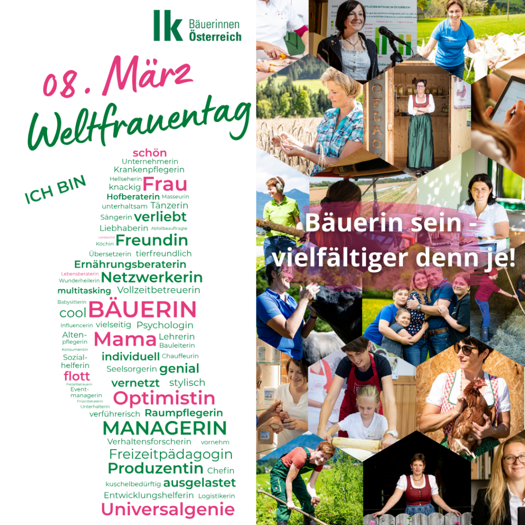 Weltweit machen am 8. März Frauen auf ihre Rechte aufmerksam und setzen sich für Geschlechtergerechtigkeit ein. Mehr als 100 Jahre nach Begründung des “Internationalen Frauentages“ werden Frauen in vielen Bereichen noch immer benachteiligt (schlechtere Bezahlung, häufigere Armut, Unterrepräsentation in Führungspositionen, Gewalt etc.). “Wo die strukturellen Bedingungen nicht gegeben sind, schlagen Frauen oft andere Wege ein oder wandern gar ab. Diesen Kompetenzverlust gerade im ländli-chen Raum gilt es zu verhindern. Netzwerke sind eine enorme Chance, damit Frauen ihr kreatives Potenzial einbringen und umzusetzen können – zum Wohle der gesamten Gesellschaft“, weiß Bundesbäuerin und Vizepräsidentin der LK Österreich Irene Neumann-Hartberger aus eigener Erfahrung.