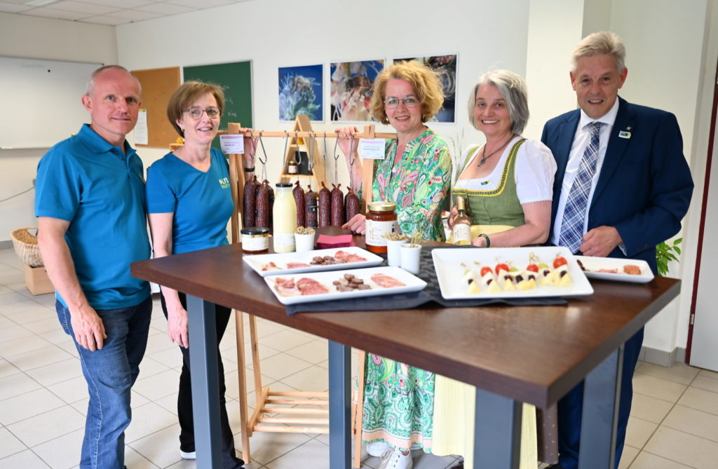 „Gemäß dem Motto ‚Genuss und Vielfalt‘ wurden die selbst erzeugten bäuerlichen Schmankerln, wie Wurst, Fleisch, Käse, Honig und Nudeln, im Verkaufsraum angeboten. Auch im Café wurde mit traditionellen bäuerlichen Mehlspeisen für das leibliche Wohl bestens gesorgt. Zudem gab es mit dem selbst hergestellten Eis und den Fruchtsäften eine willkommene Abkühlung“, erklärt Fachlehrerin Helga Schrammel, welche die Veranstaltung federführend organisierte. „Die selbst gemachten Grillwürste und Eierspeis-Brote kamen beim Publikum bestens an. Das Schaukochen, die Herstellung von Nudeln sowie das Gemüseschnitzen rundeten das Angebot ab“, betont Projektleiterin Helga Schrammel.
