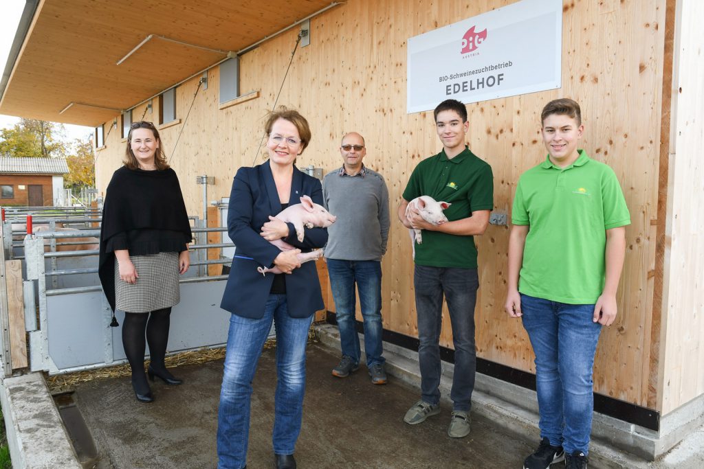 Am biologisch geführten Betrieb der Landwirtschaftlichen Fachschule (LFS) Edelhof wurde bei der Sanierung und Erweiterung des Schweinestalls besonders die tiergerechte Haltung in den Vordergrund gestellt. Der neue Bio-Schweinestall, der auch für Lehrzwecke großen Anklang findet, hat sich seither gut bewährt: „Beim Bau des neuen Lehr- und Versuchsstalles zur Bio-Schweinezucht wurde besonderer Wert auf das Tierwohl und die artgerechte Haltung gelegt. Daher bietet der Stall den Schweinen viel Platz und Auslauf ins Freie. Zudem wurde beim Bau sehr viel heimisches Holz verwendet“, betont Bildungs-Landesrätin Christiane Teschl-Hofmeister. „Im praktischen Unterricht steht den Schülerinnen und Schülern somit ein zeitgemäßer Stall zur Verfügung, wo sie praktische Kenntnisse zur fachgerechten Schweinehaltung sammeln können“, so Teschl-Hofmeister.