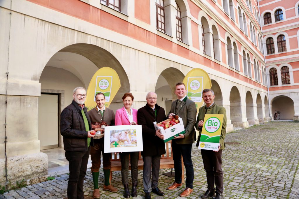 Agrarlandesrat Hans Seitinger verwies auf die Errichtung des Bio-Kompetenzzentrums am Grottenhof. „Wer Bio will, muss auch Bio kaufen“, so seine Aufforderung. Vizepräsidentin Maria Pein erklärte den Bio-Höhenflug mit der Pandemie. „Corona hat der Nachfrage einen weiteren Turbo verliehen. Im ersten Halbjahr 2021 hat ein Haushalt 113 Euro für Bio ausgegeben, im Vorjahr waren es erst 98.“