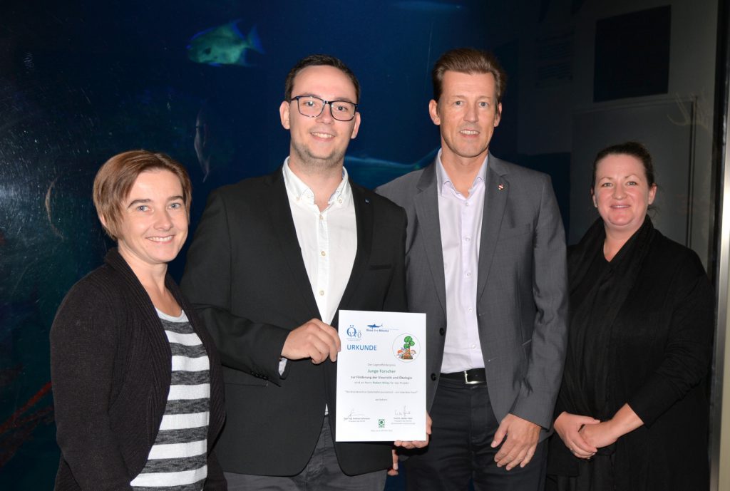 Dafür erhielt er den vom Österreichischen Verband für Vivaristik und Ökologie (ÖVVÖ) und der Firma JBL gestifteten und mit € 500,- dotierten Förderpreis. Die Urkunde nahm Robert Wiley beim Science Day im Haus des Meeres entgegen, wo er sein Projekt dem interessierten Publikum vorstellte. Unter anderem berichtete er von seinem Aufenthalt im Aquarium Berlin, wo er für die Erstellung von Ethogrammen die Brückenechse beobachtet hatte.
