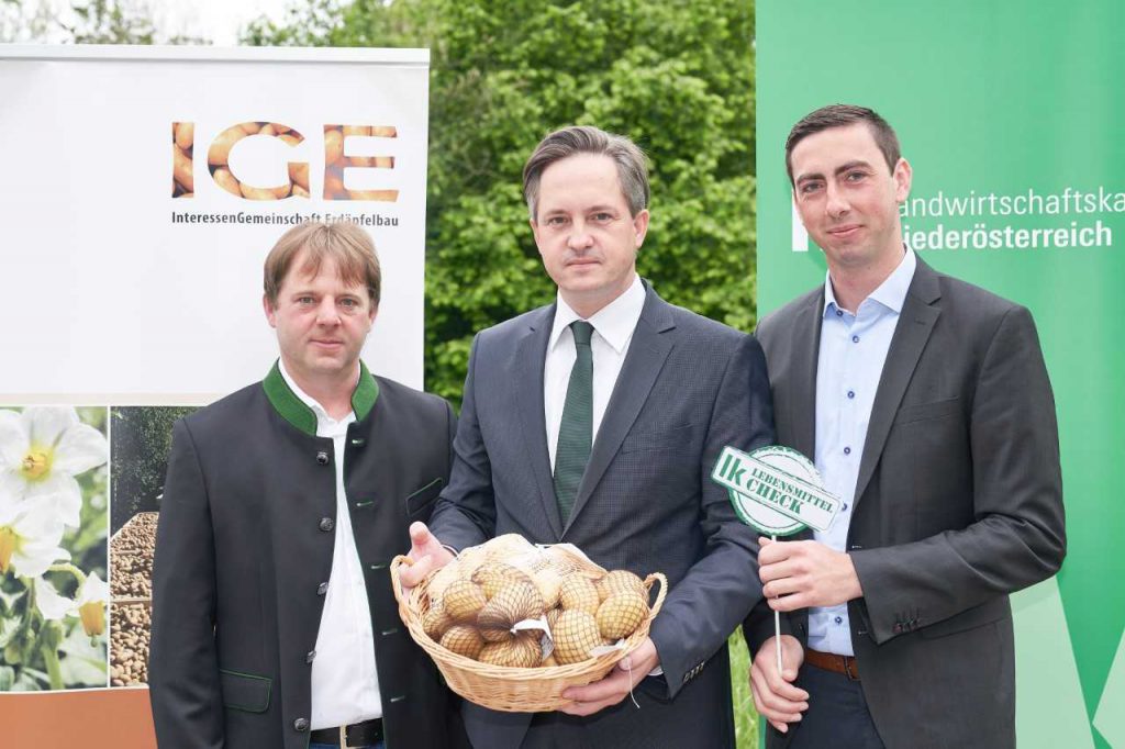 Zum dritten Mal führte die Landwirtschaftskammer Niederösterreich einen Lebensmittelcheck durch, in dessen Mittelpunkt dieses Mal Erdäpfel standen. Das Ergebnis zeigte, dass die Herkunft nach genauem Hinsehen ersichtlich ist, aber speziell bei Produkten aus Ägypten und Israel Pflanzenschutzmittel eingesetzt werden dürfen, die in Österreich bereits seit Jahrzehnten verboten sind. LK-Präsident Johannes Schmuckenschlager, Alexander Bernhuber, Europawahl-Kandidat des NÖ Bauernbundes, und Franz Wanzenböck, Obmann der Interessengemeinschaft Erdäpfelbau, fordern mehr Sicherheit für Konsumenten: „Das, was in Europa verboten ist, soll auch für Importlebensmittel aus Drittstaaten verboten sein.“