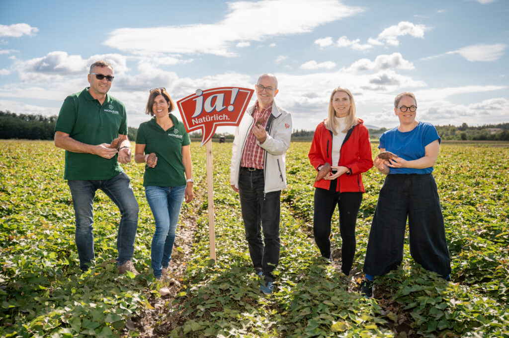 „Wir brauchen für die Zukunft total gesunde Böden“, meinte Landwirt Gerhard Michaeler bei der Vorstellung des Betriebes seiner Familie. Er baut für die Bio-Marke Ja! Natürlich Süßkartoffeln an. Wie das geht, hat er Down Under in Australien gelernt. Die anspruchsvolle Kultur gedeiht besonders gut auf eher nährstoffarmen, sandigen Böden bei der March. Diese düngt Michaeler mit Pferdemist. Außerdem setzt er auf vielfältige Begrüngen, um das Bodenleben zu aktivieren. Seit der Umstellung auf Bio ist es gelungen, den Humusgehalt um zehn Prozent zu steigern. „Gute Landwirtschaft kostet Zeit und Geld, aber langfristig sind wir am richtigen Weg“, so der Niederösterreicher.