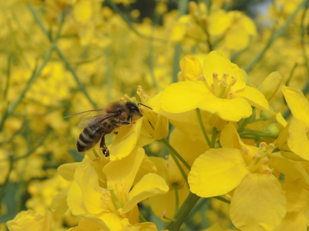 Eine kombinierte Bestäubung durch Wild- und Honigbienen liefert meist die besten Ergebnisse bei der Fruchtbildung. „Die Honigbiene ist nach wie vor am effizientesten bei der Bestäubung großflächig angelegter Kulturen wie Raps, besonders wenn diese ausreichend Nektar und Pollen produzieren. Ein weiterer Vorteil ist, dass Honigbienen blütenstet sind. Das bedeutet, eine Arbeiterin bleibt während eines Sammelflugs einem Blütentyp treu. Dieses Zusammenspiel macht Bienen zu den wichtigsten Mitarbeitern der Bäuerinnen und Bauern“, so Hiegelsberger.