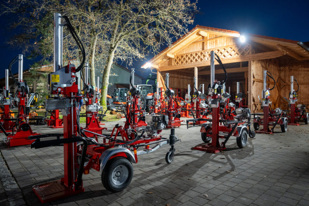 So waren z. B. sechs verschiedene Sägespalter aus dem Hause Tajfun im Einsatz zu sehen. Vom kleinen RCA 330 bis hin zum großen RCA 500 und auch die komplette Zusatzausrüstung wie verschiedene Hebetische konnten die vielen Fachbesucher live sehen! Im Seilwinden-Hotspot wurden 24 verschiedene Tajfun-Seilwinden gezeigt und auch einige Neuheiten präsentiert, wie z. B. eine hydraulische Hilfswinde, welche das Ziehen des schweren Windenseils wesentlich erleichtert. In der Rückewagen-Arena präsentierte das Hause Unterreiner 26 verschiedene Fahrzeuge mit verschiedenen Kränen und Ausrüstungen und auch einige Neuheiten, wie beispielsweise einen Forest-Master Forstkran mit einer Reichweite von 7.400 mm und einer Hubkraft von 680 kg bei angebauter Zange und Rotator bei 7,4 m! Auch aus dem Hause Tajfun wurden einige Neuheiten präsentiert, z. B. ein 14 t Rückewagen mit einem Forstkran mit einer Reichweite von 10,3 m und dabei 760 kg Hubkraft! Aus der eigenen Produktion AMR wurde das komplette Programm an Holzspaltern, Kreissägen, Trommelsägen, Solomat-Kreissägen den Gästen im Einsatz präsentiert. Auch der Packomat, die Holzverpackung aus dem Elsass war LIVE im Einsatz zu sehen, genauso wie die Pickomat, die neue Anspitzmaschine!