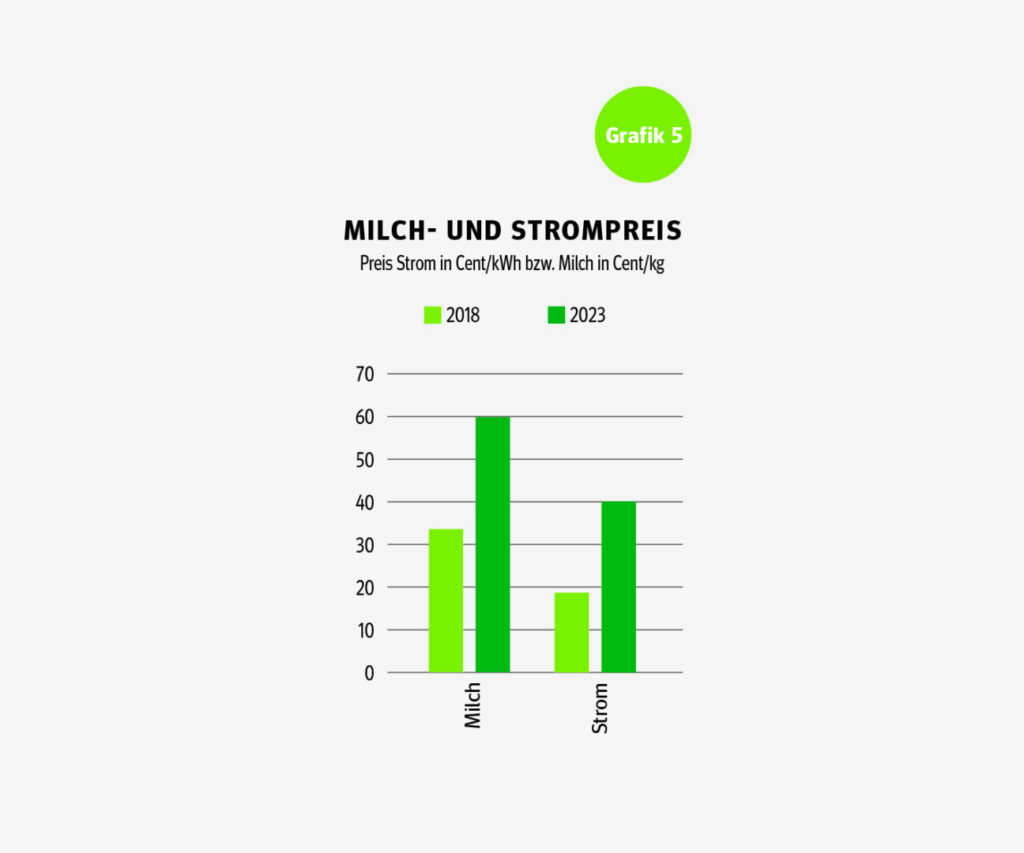 Auch wenn der Milchpreis eine Momentaufnahme wiedergibt, so trägt der gestiegene Milchpreis wesentlich zu einer Verbesserung der Gesamtsituation bei. Vergleicht man den aktuellen Milchpreis mit dem aktuellen Strompreis, so ist die aktuelle Situation sogar günstiger als noch 2018. Das liegt daran, dass die Trocknungskosten je nach Trocknungsart nur bei etwa 5% bis 15% des Milchertrages liegen.