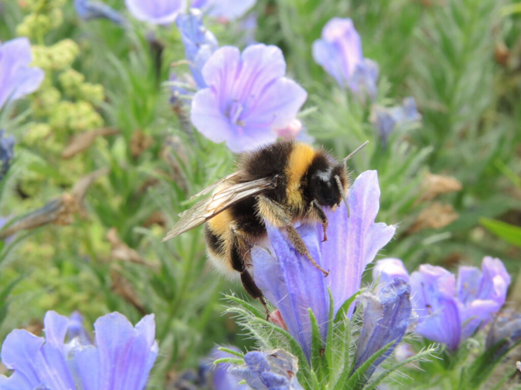 - Kontinuierliches Blütenangebot: Weiden, Taubnesseln, Beinwell, Klee-, Platterbsen- und Wickenarten, Salbei, Herzgespann und viele weitere heimische Pflanzen sind die Nahrungsbasis für Hummeln zu allen Jahreszeiten. Wer eine Wiese besitzt, sollte diese nur abschnittsweise mähen, damit immer genug Blüher vorhanden bleiben.