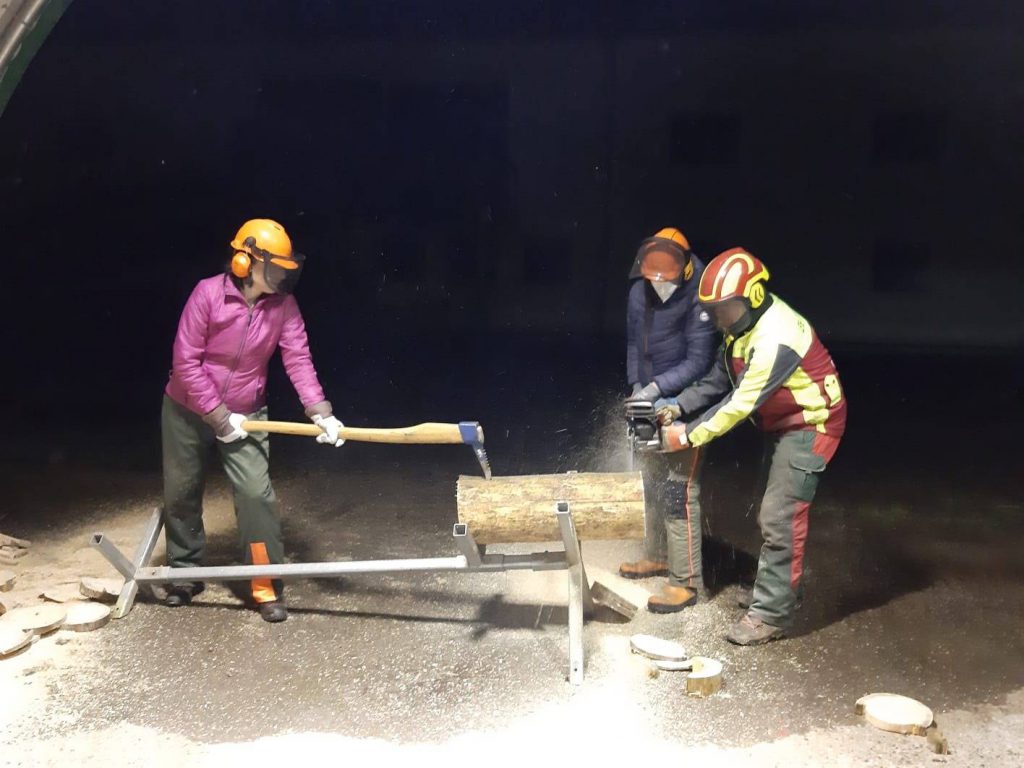Der Umgang mit einer Motorsäge will gelernt sein. Eine Voraussetzung ist eine richtig ausgewählte Sicherheitskleidung, bestehend aus Schnittschutzhose, Handschuhen und festem Schuhwerk. Bereits nach den ersten Schnitten wurde bei manchen die Freude an dieser kräfteraubenden Arbeit entdeckt. Nicht nur im eigenen Wald, sondern auch im Hausgarten kann das Erlernte gut umgesetzt werden.