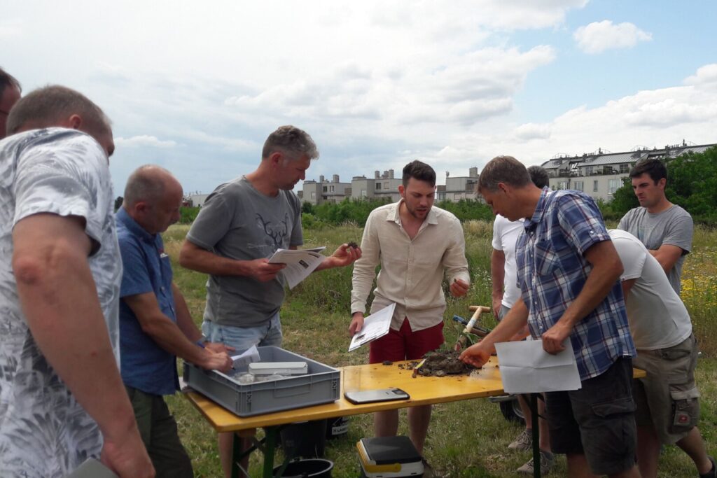 Die Teilnehmer dürfen sich auf praxisgerechte Inhalte freuen: Gemeinsam mit den Vortragenden erarbeiten sie wertvolles Wissen über die vorkommenden Bodenarten, einschließlich ihrer Eigenschaften für Wasser-, Luft- und Wärmehaushalt, Bodenbildungsprozesse, sowie Bodenaufbau, Bodenprofile und Bodenbearbeitung. Bei der ökosystemaren Bodenansprache wird der Boden ganzheitlich betrachtet. Praxistaugliche Methoden wie zum Beispiel Fingerprobe, N-min-Messung oder Spatenprobe werden vorgestellt und Bodentiere unter dem Mikroskop untersucht. Besprochen wird zudem alles rund ums Thema Pflanzenernährung: Vom Nährstoffmanagement zur Bodenchemie und Nährstoffdynamik. Einblicke in aktuelle Versuchsergebnisse, beispielsweise zu Begrünungspflanzen, sowie Präsentationsübungen runden die Ausbildung ab. Zum Abschluss stellen die Teilnehmer einander das Ergebnis ihres eigenen Praxisversuches zu einer selbstgewählten Fragestellung vor.