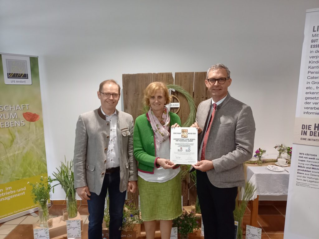 „Dieses Zertifikat ist eine Belohnung für unseren eingeschlagenen Weg auf regionale Lebensmittel zu setzen. Eine tolle Auszeichnung für unsere Schule.“ Lob für die Schule gibt es von Franz Waldenberger, dem Präsidenten der Landwirtschaftskammer: „Es freut mich sehr, dass in der Landwirtschaftlichen Fach- und Berufsschule Andorf auf Regionalität gesetzt wird und die Schüler wissen, woher ihr Essen kommt.“