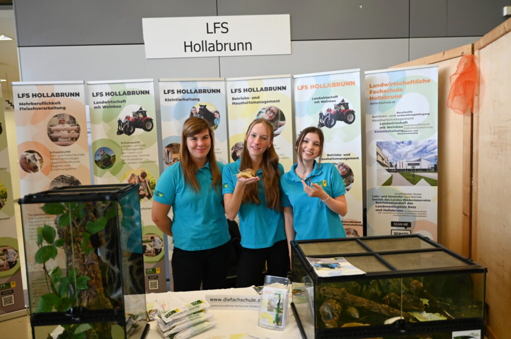 Die Landwirtschaftliche Fachschule (LFS) Hollabrunn war kürzlich auf den Bildungsmessen in Bad Vöslau, Wieselburg und Stockerau vertreten. Schülerinnen und Schüler sowie Lehrkräfte der Schule freuten sich, Interessierten die vielfältigen Ausbildungsmöglichkeiten der Schule vorzustellen.