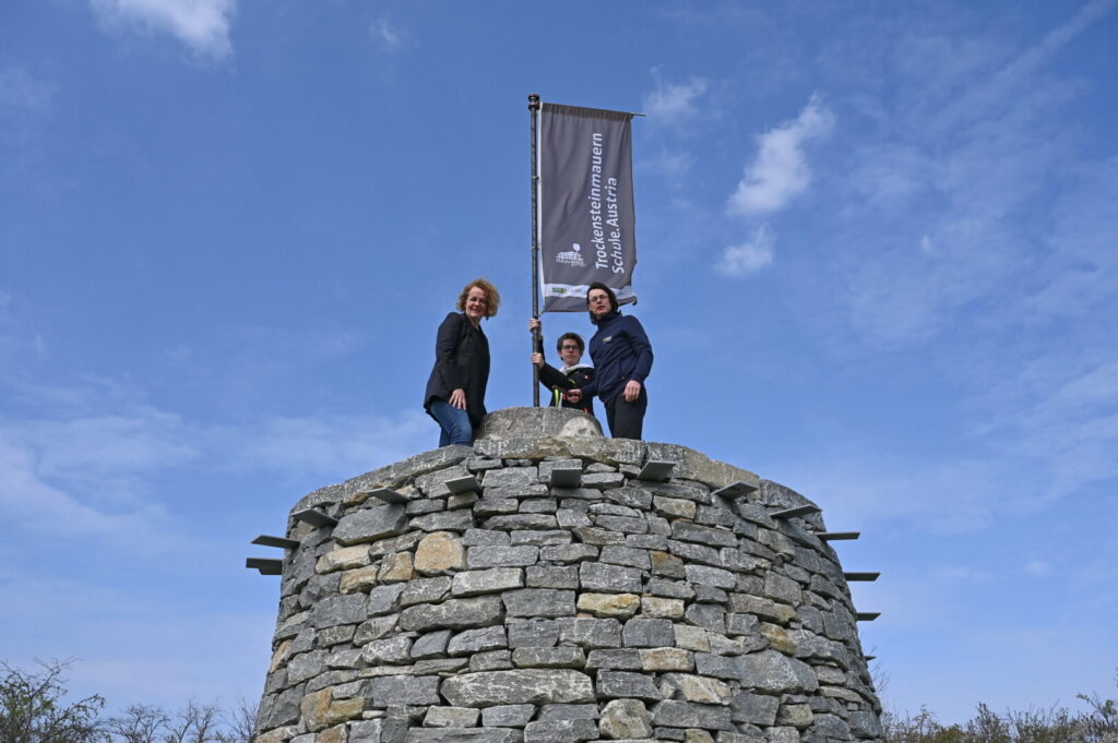 „Der vier Meter hohe Steinturm wurde von Trainerinnen und Trainern der Trockensteinmauern-Schule im Permakultur-Garten der Weinbauschule Krems errichtet. Dabei arbeiteten wir mit der Gartenbauschule Langenlois und der NÖ Bauakademie zusammen“, betont Rainer Vogler, Leiter der Trockensteinmauern-Schule. „Für den Bau des Monuments wurden von Freiwilligen rund 800 Arbeitsstunden geleistet und über 100 Tonnen Stein wurden verbaut“, so Vogler, der sich bei allen beteiligten Personen und Organisationen für die engagierte Mitarbeit bedankt.