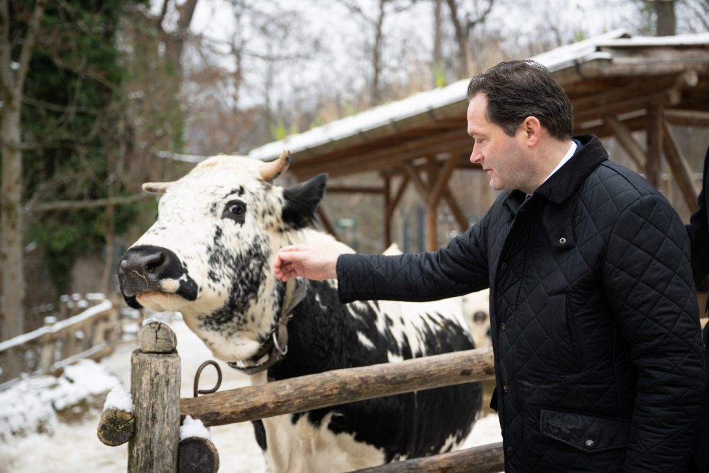 Landwirtschaftsminister Norbert Totschnig hat die Patenschaft für zwei Pustertaler Sprinzen im Tiergarten Schönbrunn übernommen – eine Rinderrasse, die vom Aussterben bedroht ist. Tiergartendirektor Stephan Hering-Hagenbeck übergab die Patenurkunde persönlich an den Minister.