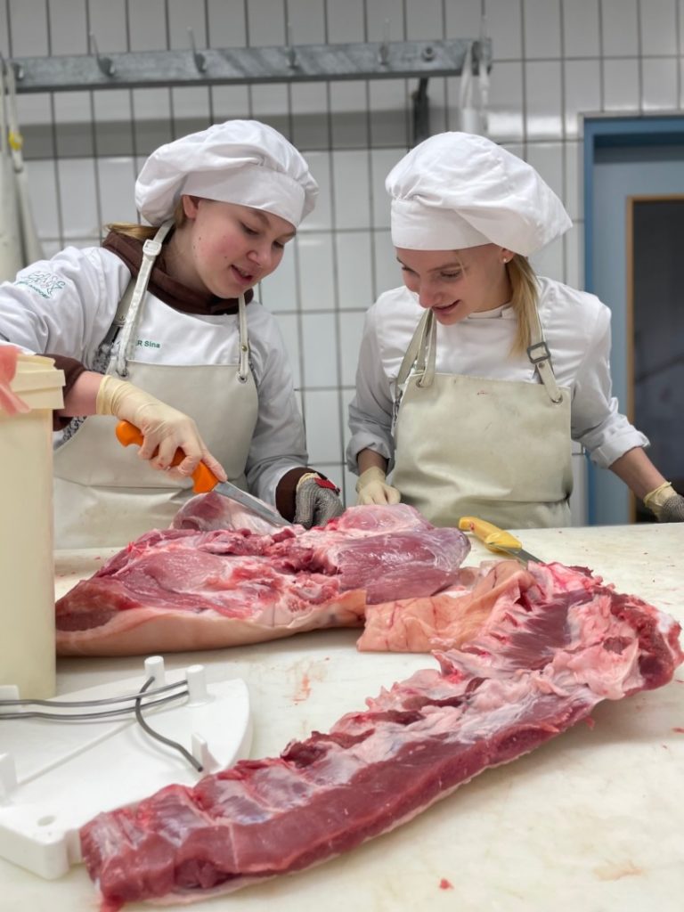 Denn sie durften selbst pausenlos Hand anlegen: “abschwarteln”, schneiden, faschieren, pökeln. Arbeiten, dessen Wissen verloren geht, wenn es nicht gelebt wird. So ist den Fachschulen Andorf und Otterbach ein besonderes Anliegen, diese Fertigkeiten zu fördern. Umgekehrt erleben die Otterbacher Schüler gerade den Praxisunterricht an der Fachschule Andorf und erleben viele neue Eindrücke aus der Hauswirtschaft.