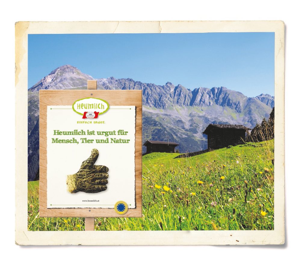 Noch bis 27. März 2017 können sich heimische Heumilchbauern an der aufmerksamkeitsstarken Mitmach-Aktion der ARGE Heumilch beteiligen. Sie sind dazu eingeladen, Holztafeln mit der Abbildung eines Heudaumens und der Aufschrift „Urgut für Mensch, Tier und Natur“ auf ihren blühenden Grünflächen aufzustellen. Damit soll zum Start der Weidesaison auf die nachhaltige Wirtschaftsweise auf den heimischen Wiesen, Weiden und Almen hingewiesen werden.