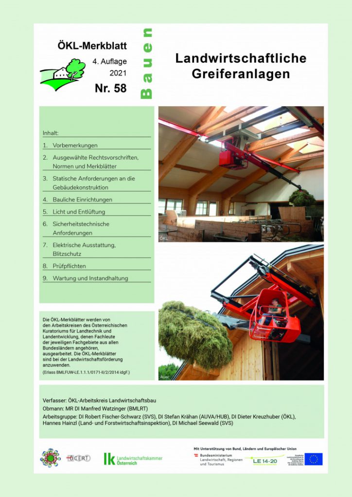 Das ÖKL-Merkblatt 58 gibt Auskunft darüber, was beim Einbau und beim Betrieb einer Greiferanlage zu berücksichtigen ist.