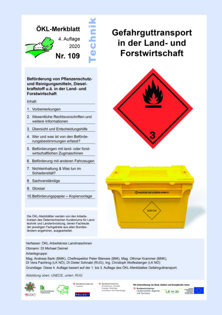 Das ÖKL-Merkblatt 109 Gefahrguttransport in der Land- und Forstwirtschaft ist in der 4. Auflage erschienen!