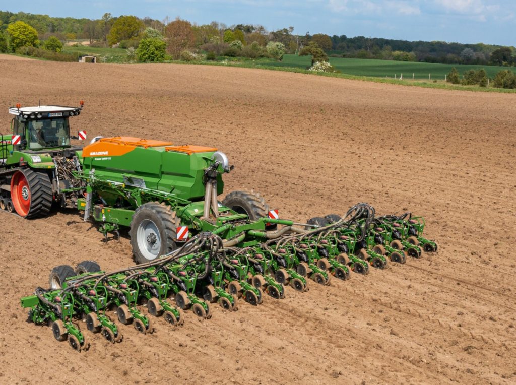 AMAZONE erweitert jetzt das Programm der Einzelkorn-Sätechnik um die gezogenen Produkttypen Precea 9000-TCC und 12000-TCC mit 9 und 12 m Arbeitsbreite. Die speziell für Lohnunternehmen und Großbetriebe entwickelte Variante besticht durch die leistungsstarke Überdruckvereinzelung, große Behältervolumina sowie das innovative Saatgut-Zuführungssystem Central Seed Supply. Die sehr präzise Saatgutablage sorgt für hohe Feldaufgänge auch bei hohen Arbeitsgeschwindigkeiten von bis zu 15 km/h.