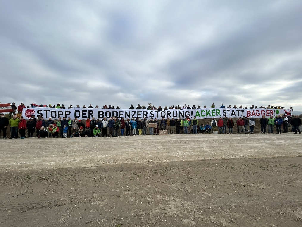 Erschüttert zeigte sich Monika Jasansky, Biogärtnerin aus dem benachbarten Bad Erlach. Sie betont, dass die Böden hier besonders wertvoll seien, da hier Pflanzen auch bei Hitze und Dürre durch ein dicke Schicht Humus überleben würden: „Es schmerzt mich zu sehen, wie hier achtlos Wunden in den kostbaren Boden gerissen werden!”