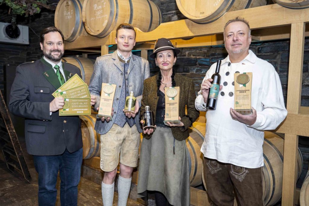 Sensationeller Vierfach-Landessieg, drei herausragende Hattricks und erstmals holt eine beeindruckende Frau einen Doppellandessieg: alles Perfektionisten und Routiniers. Großer Triumph für die steirischen Edelbrand-Größen bei der Landesprämierung der Landwirtschaftskammer: Der bisher erste Vierfach-Landessieger Günter Peer aus Leitring brilliert mit seinen vier klassischen Bränden – Quitten-, Mispel-, Himbeer- und Kriecherlbrand – und ist phänomenaler Matador dieses Qualitätsmessens. Dicht gefolgt von drei hervorragenden Dreifach-Siegern: die Titelverteidiger Familie Hochstrasser aus Mooskirchen (Kirschfruchtsaftlikör, Kürbiskerncocktail, Kirsche Zigarrenbrand), Gertrude und Franz Semlitsch aus Deutsch-Haseldorf (Birnen-, Williams- und Hauszwetsckenbrand). Zum allerersten Mal in der Runde der Mehrfachsieger ist Peter Bäuchel vom Weingut & Destillerie Da Finz in Mooskirchen (Vogelbeer- und Marillenbrand, Da Finz- Gin) aufgestiegen. Besondere Hochachtung in der Riege der Mehrfachsieger verdient Barbara Hainzl-Jauk aus Frauental: Als eine der wenigen Frauen ist sie in eine absolute Männerdomäne vorgedrungen und hat nach Landessiegen in den vergangenen Jahren heuer mit ihren Schilchertresterbrand und Schilcherlikör erstmals eindrucksvoll einen Doppellandessieg errungen.