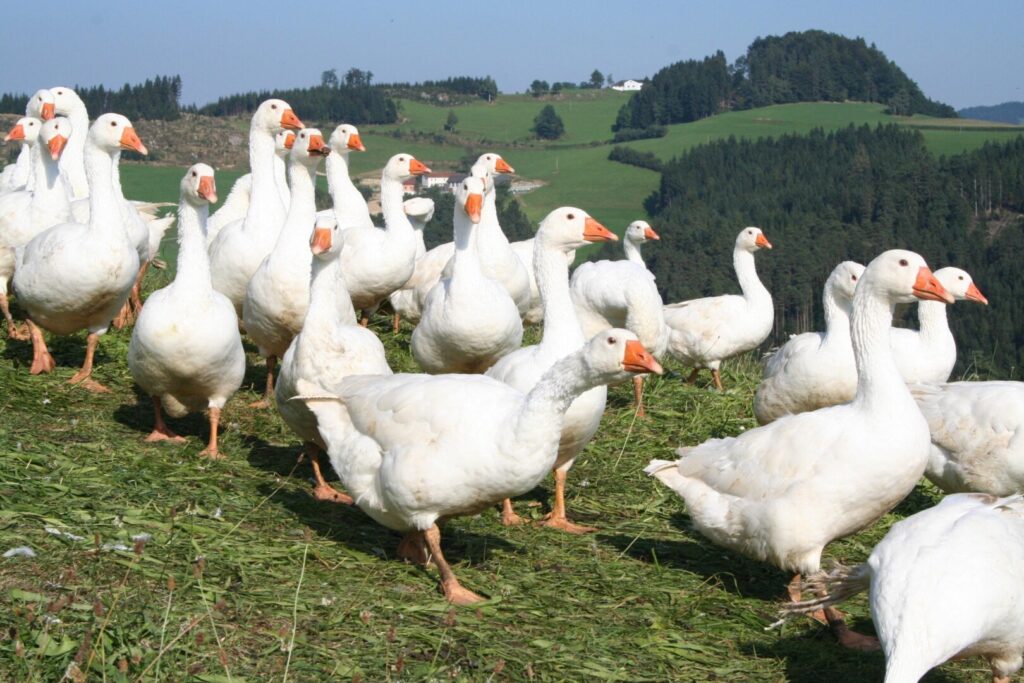 „Heuer könnten die steirischen Weidegänse wirklich knapp werden. Nach dem goldenen Herbst hat die Nachfrage knapp vor Martini so richtig Fahrt aufgenommen. Die Saison erreicht rund um Martini am 11. November den ersten Höhepunkt, wird den ganzen November andauern und rund um Weihnachten kündigt sich ein zweiter Höhepunkt an“, sagt Margit Fritz, Obfrau der 42 steirischen Ganslbauern. Mittlerweile ziehen in der Steiermark bereits 42 steirische Ganslhalter 8.000 Gänse auf und haben darin eine wichtige, saisonale Nische für ihren landwirtschaftlichen Betrieb gefunden. Die steirischen Weidegänse ernähren sich vorwiegend vom grünen Gras ihrer Gänseweiden und etwas Getreide. Daher wachsen sie auch wesentlich langsamer als importierte Schnellmastgänse. Während die heimischen Weidegänse fünf bis sieben Monate auf den Weiden verbringen können, sehen die ausländischen Schnellmastgänse nie eine Weide und werden in kurzer Zeit nur im Stall gemästet. Die Weidefläche der steirischen Weidegänse ist großzügig bemessen – pro Hektar werden etwa 100 Tiere gehalten. Die steirischen Ganslbäuerinnen und Ganslbauern halten im Durchschnitt 190 Tiere am Hof. Von den 42 steirischen Ganslhaltern sind sieben biozertifiziert, sie halten etwas mehr als 700 Bio-Weidegänse.