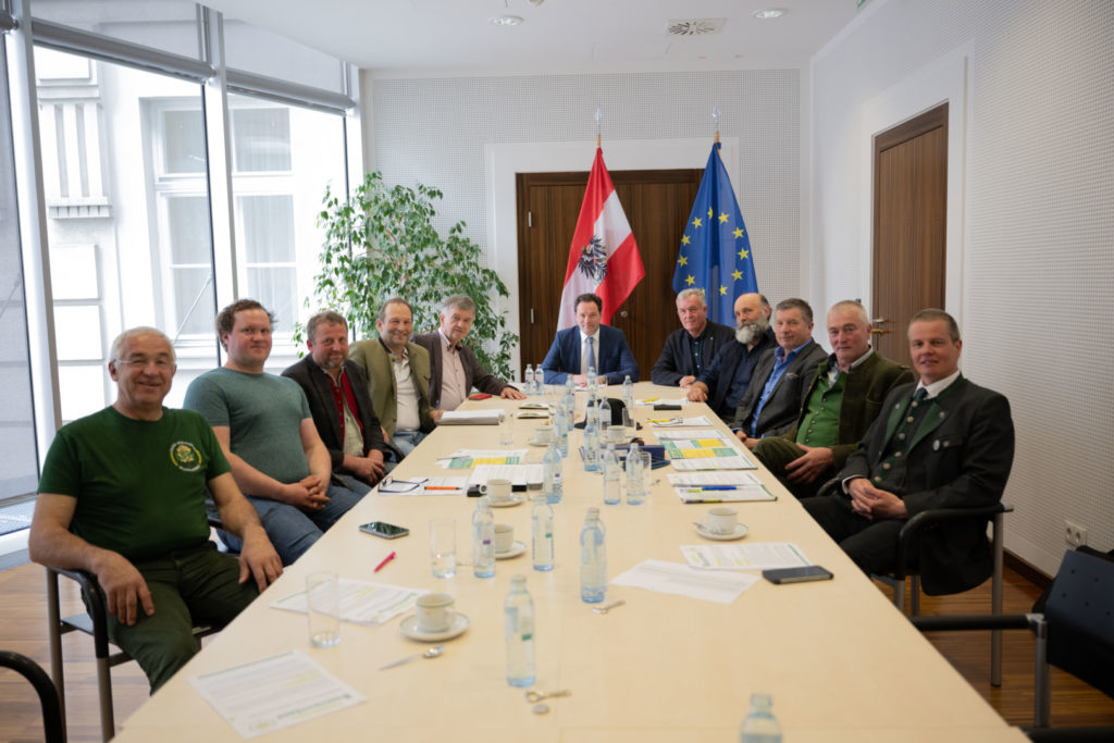 Landwirtschaftsminister Norbert Totschnig lud auf Grund des „Offenen Briefes vom UBV“ im Rahmen seiner Versorgungs-Sicherheitstour im letzten Jahr den UBV zu einem fachlichen Austausch über die Herausforderungen für die Land- und Forstwirtschaft zu sich ins Ministerium ein. Das Gespräch fand in gegenseitiger großer Wertschätzung statt, die UBV-Forderungen bezeichnete Totschnig als „mächtig“.