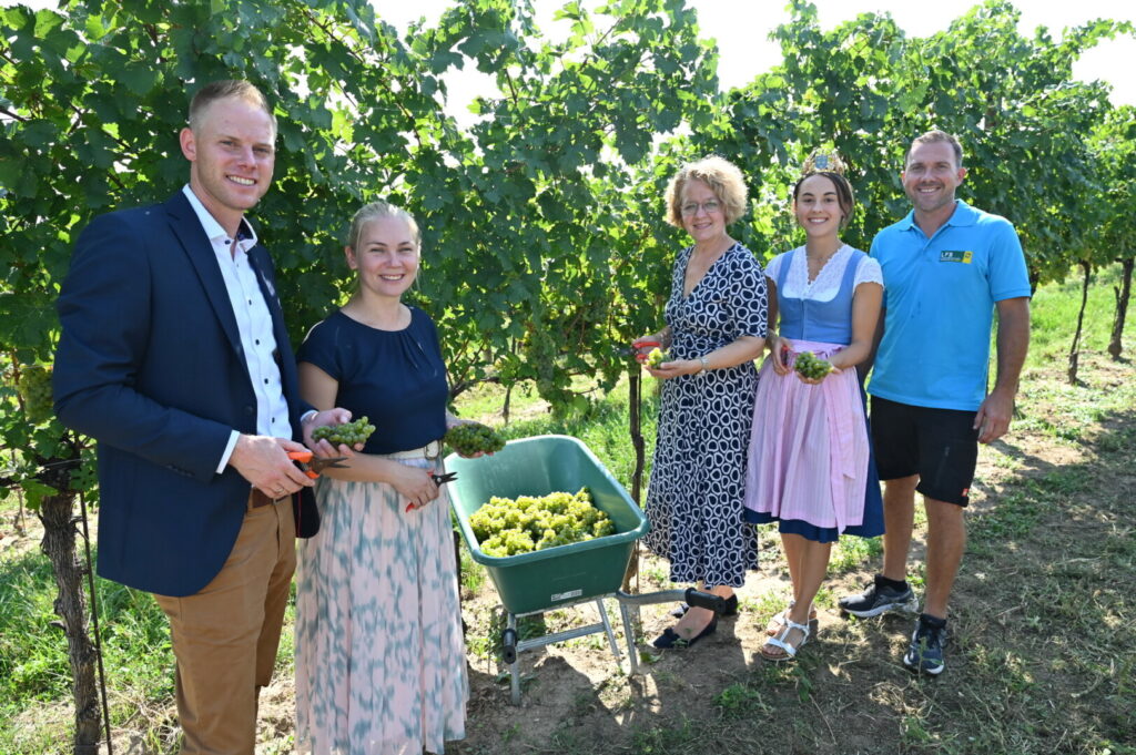 An den vier NÖ Landesweingüter Hollabrunn, Krems, Mistelbach und Retz ist die Weinernte fast abgeschlossen. Der Großteil der Trauben konnte noch vor den Unwetterereignissen geerntet werden. Sofern möglich, findet jetzt noch die abschließende Ernte statt. Im Weingarten der Fachschule Hollabrunn fand vor kurzem die Weinlese für den diesjährigen Wein der NÖ Landesweintaufe im Beisein von Bildungs-Landesrätin Christiane Teschl-Hofmeister statt.