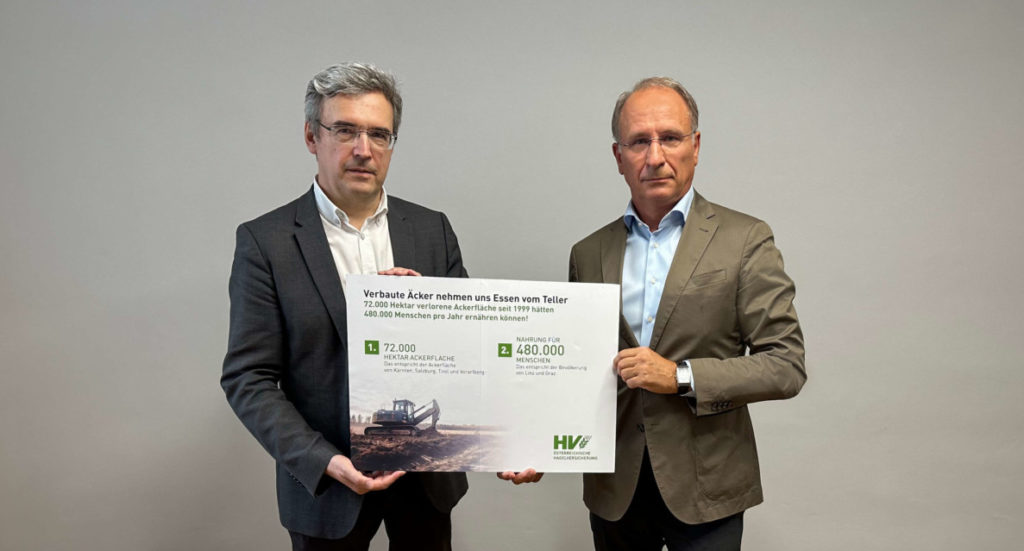 Österreich ist seit dem vergangenen Sommer wieder um ein Stück mehr verbaut worden. Täglich sind es mehr als 11 Hektar Äcker und Wiesen, die aus der Produktion genommen werden. Die Folgen sind weithin sichtbar: Das Land ist völlig zersiedelt. Was das bedeutet? „Durch den Bodenverbrauch kommt es zu einem Verlust der Produktionsgrundlage und somit zu einer Gefährdung der heimischen Lebensmittelversorgung. Das ist auch eine Frage der nationalen Sicherheit! Daher muss es das oberste Ziel Österreichs sein, die Lebensgrundlage Boden zu erhalten, nicht durch Verbauung weiter zu zerstören und die Selbstversorgung Österreichs mit heimischen Lebensmitteln aufs Spiel zu setzen. Hier herrscht jedenfalls Handlungsbedarf“, so der eingehende Appell des Vorstandsvorsitzenden der Österreichischen Hagelversicherung, Kurt Weinberger, und des Autors der im Rahmen des Pressegespräches präsentierten WIFO-Studie „Bodenverbrauch nimmt uns Essen vom Teller“, Franz Sinabell.